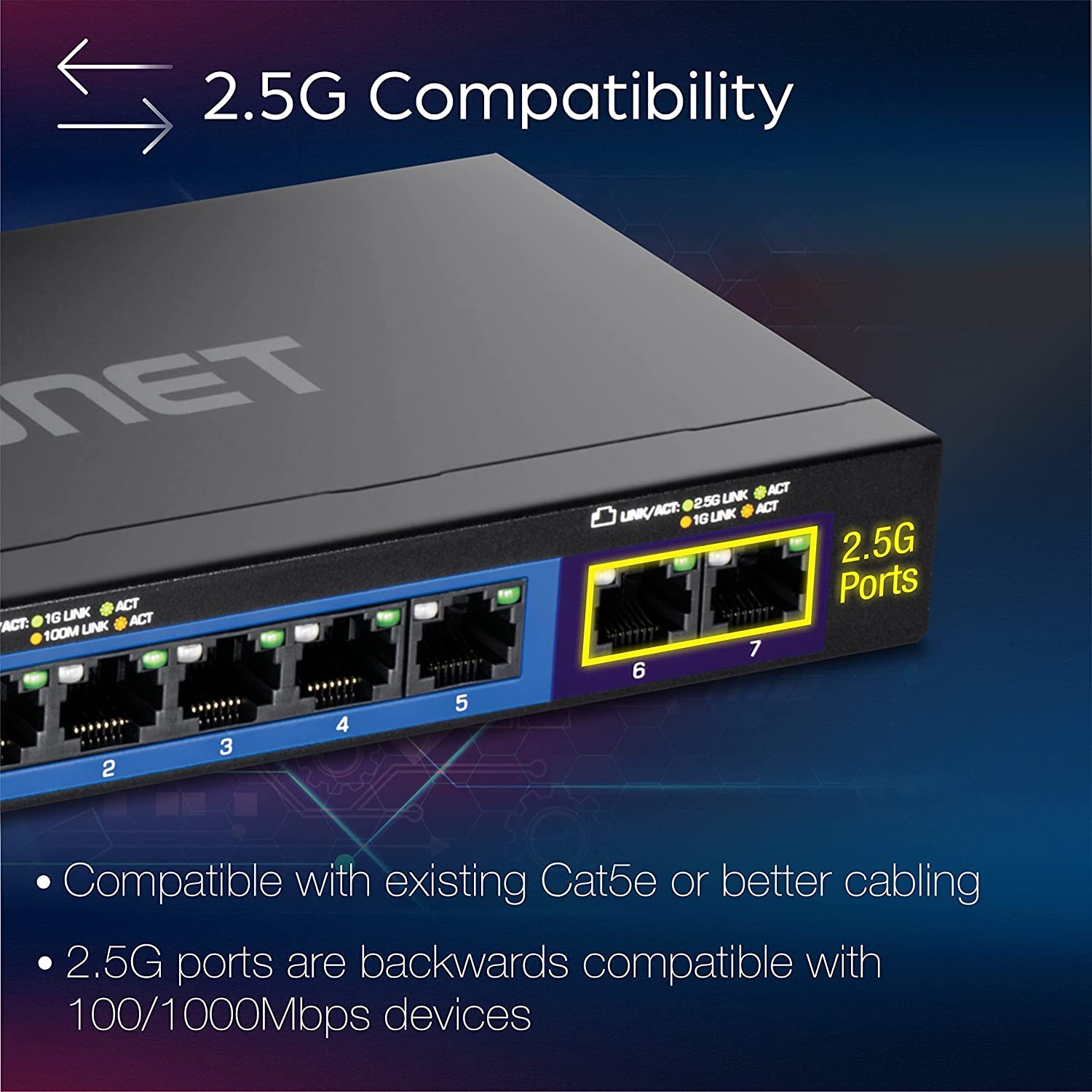 Affordable multi-gig switch provides 5 x 1G ports and 2 x 2.5G ports for high-speed network connections