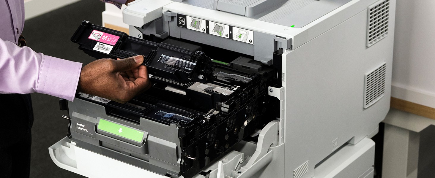 Equipped with a 520-sheet capacity paper tray and 100-sheet capacity multipurpose tray for custom media printing.(3) Additional paper tray options can be added to help meet your workgroup's evolving needs.(4)