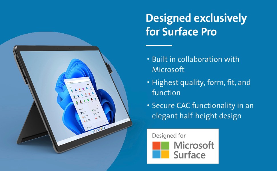 Designed exclusively for Surface™ Pro 8 Smart Card (CAC) Reader Adapter w/ HDMI and USB-C is a purpose-built solution that offers a TAA-compliant
