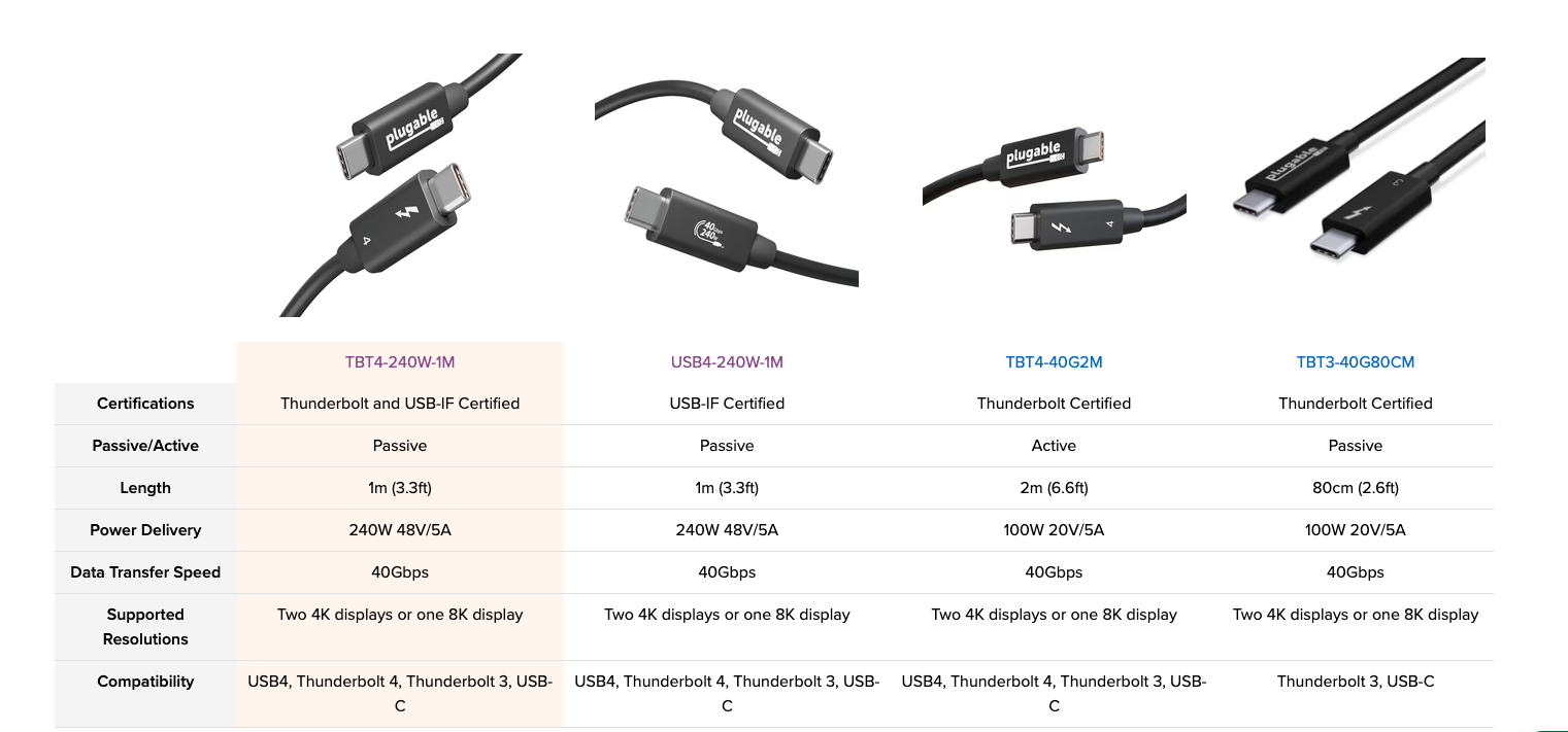 This cable is Thunderbolt 4 certified, and that comes with some incredible benefits. Thunderbolt 4, Thunderbolt 3, USB4, or USB-C, it doesn’t matter, the Plugable Thunderbolt 4 EPR cable will work. Even at a full meter (3.3ft), you won't see a decrease in performance.