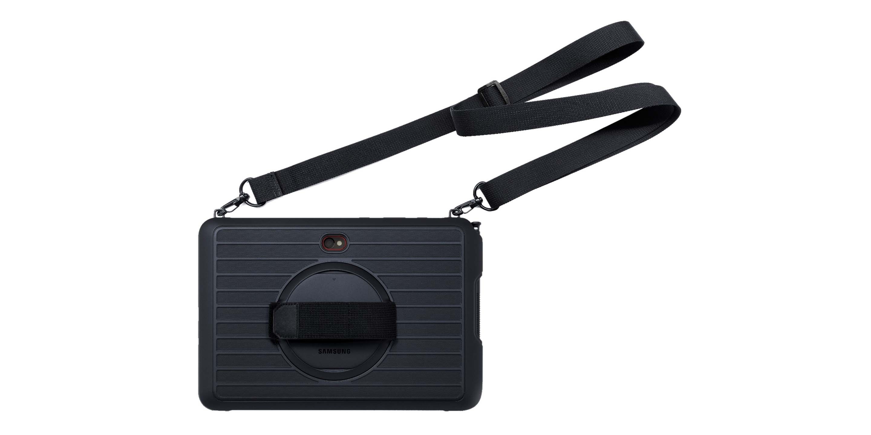 Galaxy Tab Active4 Pro Smartcase's easy-carry shoulder strap and 360-degree rotatable hand grip keep you flexible in the field with one-handed usability. View, write and type from multiple angles with the detachable multidirectional swivel module and kickstand, and keep your S Pen close at hand with an integrated stylus holder
