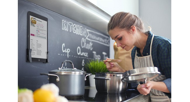 With the help of the wall holder you can use the tablet in the kitchen as a cookbook.