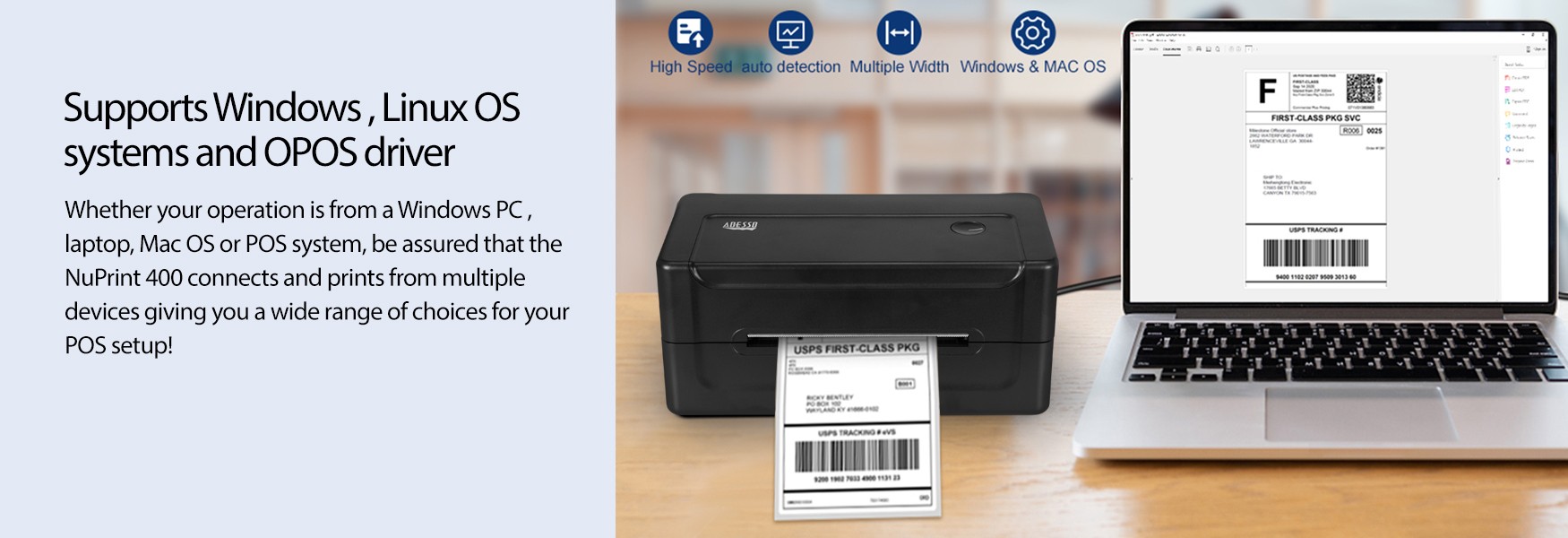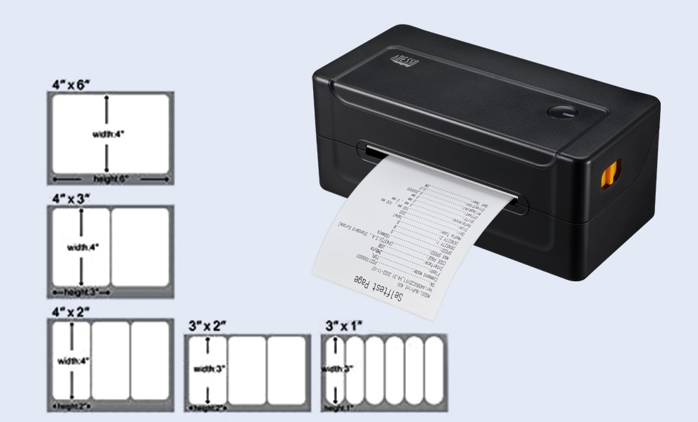 Supports label paper, continuous, black label, and stacked paper. Support paper width from 2 to 4.65 inches (50 to 118mm)