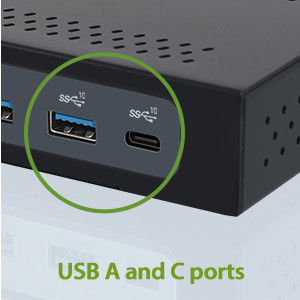 Dock and expand your USB-C laptop with 9 port options Up to Dual 4K displays via HDMI or Displayport USB-A and USB-C ports for peripheral devices DisplayLink chip allows for Windows and macOS compatibility Power button TAA Compliant Power delivery 3.0 Up to 100W