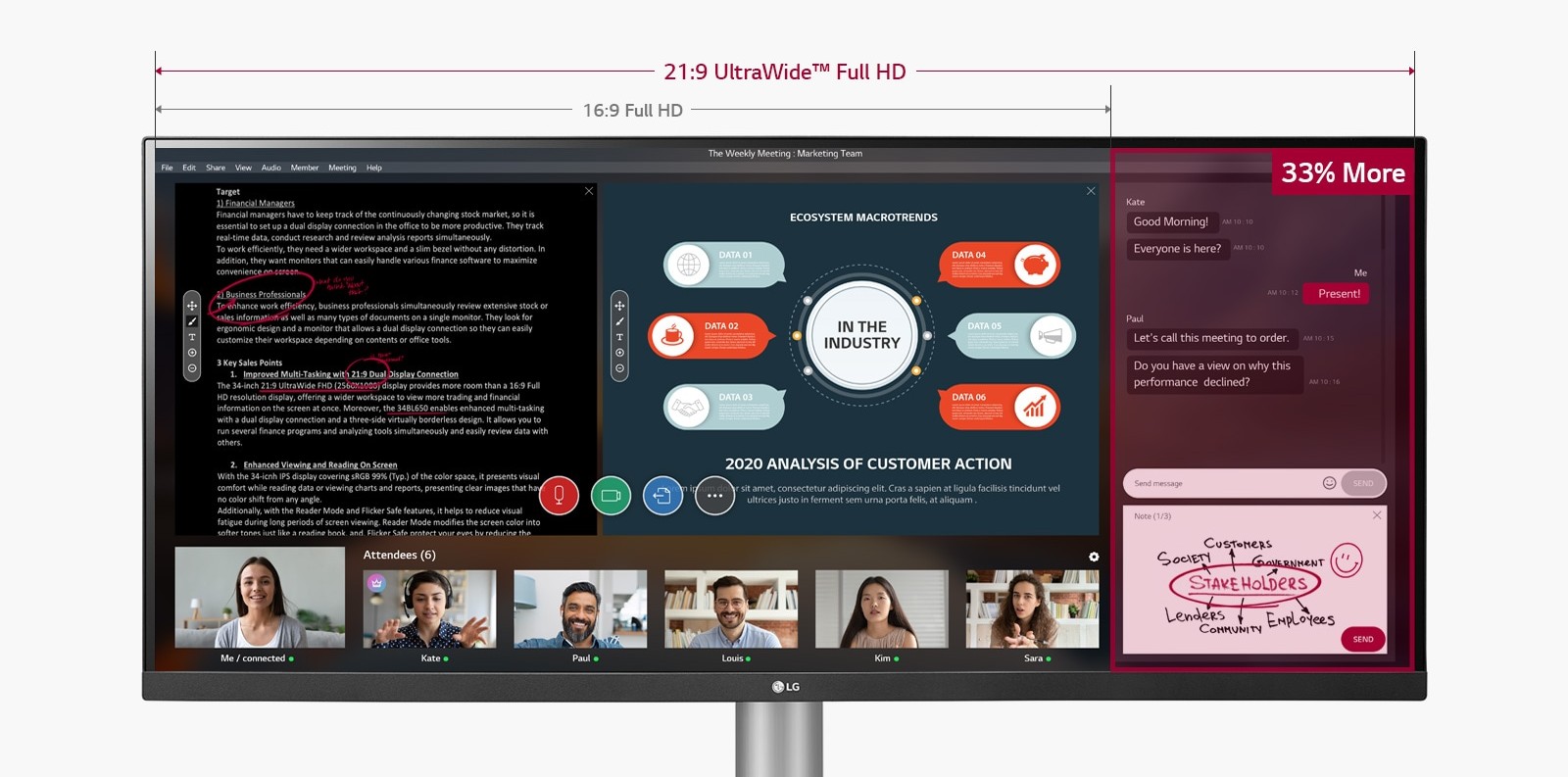 This UltraWide™ screen enables you to have your work documents and screens side by side without repeating Alt-tab.