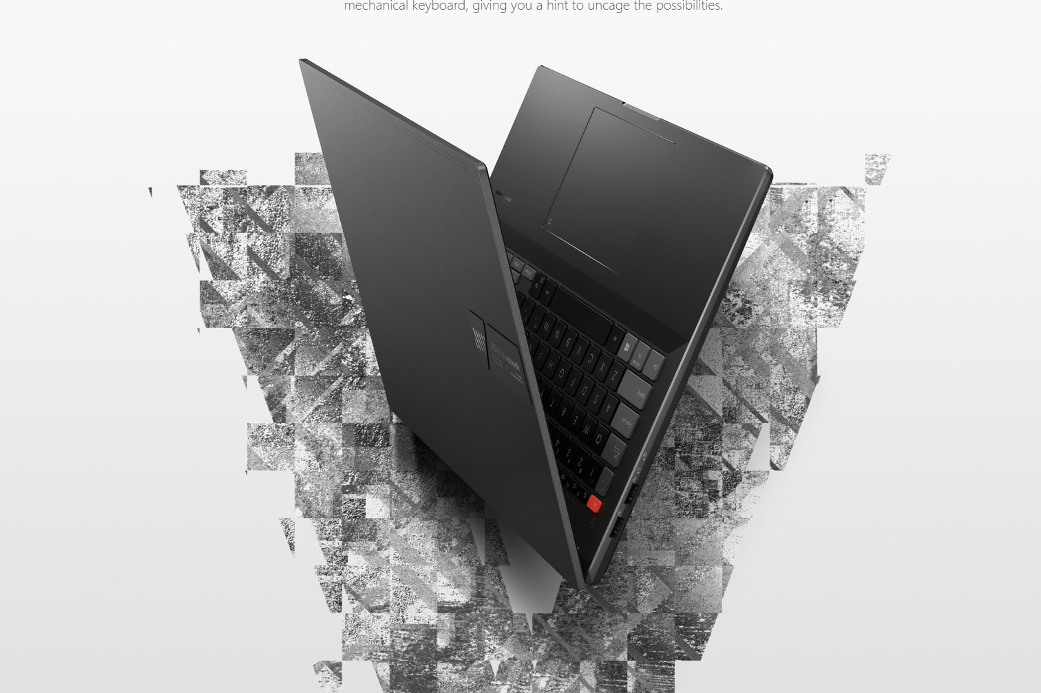 The unique ASUS logo adds excitement even you before you open the lid. Explore further, and see how the expressive design continues under the lid, where a warning-striped Enter key takes center stage. The ESC key with its Warning Orange color-blocked design continues the industrial theme, echoing the pioneering attitude of your brave new world. The redesigned keyboard echo the look of a professional studio deck or mechanical keyboard, giving you a hint to uncage the possibilities