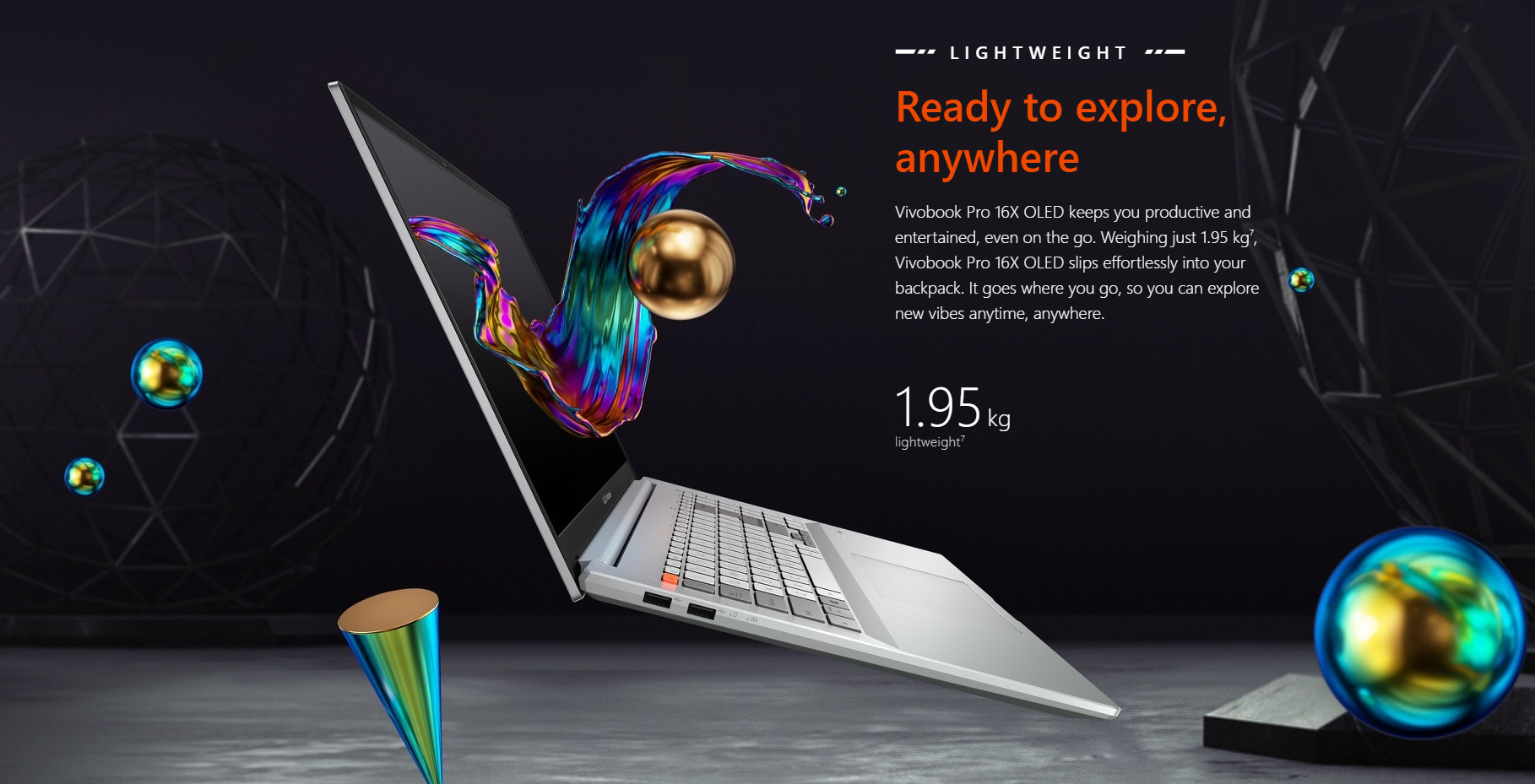 Your journey of discovery starts here, with Vivobook Pro 16X OLED to power your exploration. Whatever your creative workload — scenes or spreadsheets, documents or designs — the latest 11th Gen Intel ® H Series CPU and NVIDIA ® GeForce ® RTX ™ 3050 graphics give you the fastest performance in an ultrathin laptop. With up to 32 GB memory and a 1 TB PCIe ® SSD, you’re ready for anything, whether it’s high-pressure multitasking, tough multimedia editing, or just some laid-back gaming