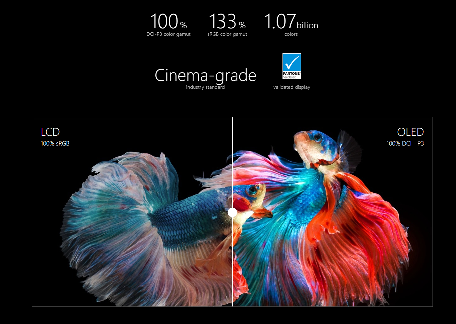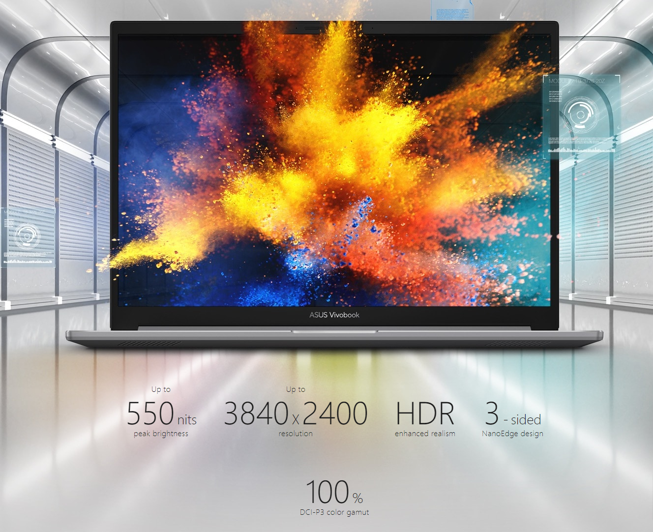 ASUS OLED laptops deliver exceptionally detailed and realistic visuals, with a cinema-grade 100% DCI-P3 color gamut. This means that the colors reproduced on the display are richer and more vivid: it’s ideal for color-intensive projects, but also enhances any kind of content