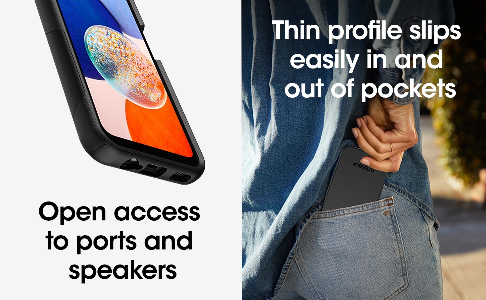 Life on the go just got a lot easier with Galaxy A14 5G Commuter Series Lite. Featuring a soft internal slipcover and a rigid exterior shell, Commuter Series Lite keeps your phone safe from day-to-day drops and scrapes. Commuter Series Lite protects your Galaxy A14 5G with a thin profile that slips in and out of pockets easily. And, it gives you the confidence to make the most of every moment.