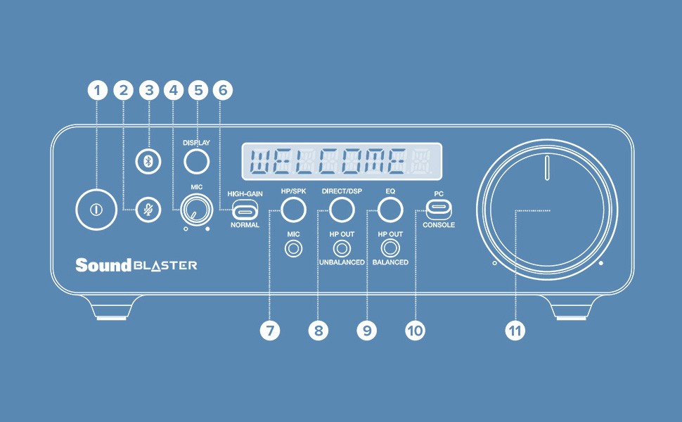 Choose from a plethora of two-way RCA and TOSLINK Optical connectors, a gold-plated 3.5 mm Microphone-in port with an easy-to-access mic gain knob, as well as a convenient USB-C audio port that also powers the Sound Blaster X5 via a single cable for fuss-free audio enjoyment. For versatility, the Sound Blaster X5 also features a ubiquitous gold-plated 3.5 mm headphones port for easy connectivity to your commonplace headphones.