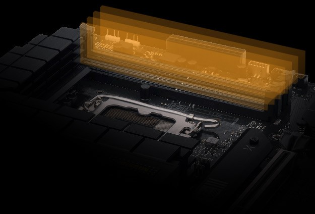 Improvements to trace routing design provide the latest Intel processors with enhanced access to memory bandwidth. ASUS OptiMem II technology carefully maps memory signal pathways across different PCB layers to reduce path distance, and it adds shielding zones that significantly reduce crosstalk.