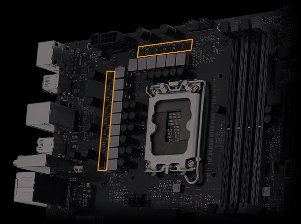TUF GAMING B760-PLUS WIFI D4 takes all the essential elements of the latest Intel ® processors and combines them with game-ready features and proven durability. Engineered with military-grade components, an upgraded power solution and a comprehensive cooling system, this motherboard goes beyond expectations with rock-solid performance for marathon gaming. TUF GAMING motherboards also undergo rigorous endurance testing to ensure that they can handle conditions where others may fail. Aesthetically, this model incorporates an embossed nameplate and geometric design elements to reflect the dependability and stability that defines the TUF GAMING series.