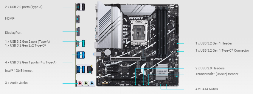 ASUS Prime series motherboards are expertly engineered to unleash the full potential of 13 th Gen Intel ® Core™ Processors. Boasting a robust power design, comprehensive cooling solutions and intelligent tuning options, PRIME Z790M-PLUS provides users and PC DIY builders with a range of performance optimizations via intuitive software and firmware features.