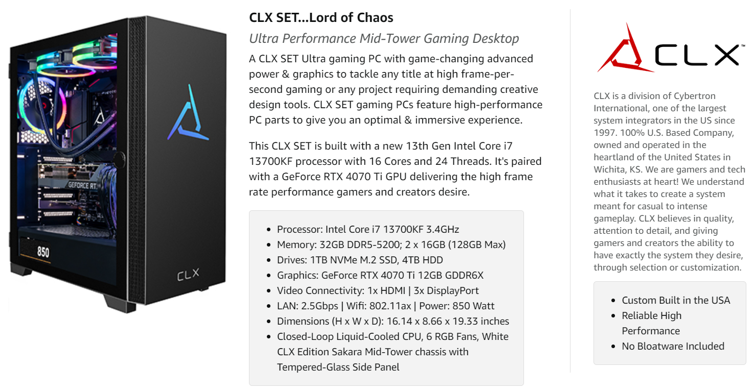 All CLX gaming desktops are hand built in the USA using name-brand premium components, and expertly put together by true cable management and airflow control experts.