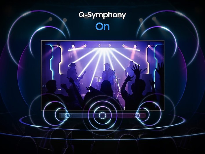 Amp up your audio with the greatest duo of all time—Samsung TVs paired with a Samsung soundbar. With Q-Symphony, your TV speakers paired with Q-Series and S-Series soundbar operate as one. Together, they can optimize all the channels to bring you a masterfully orchestrated sound experience