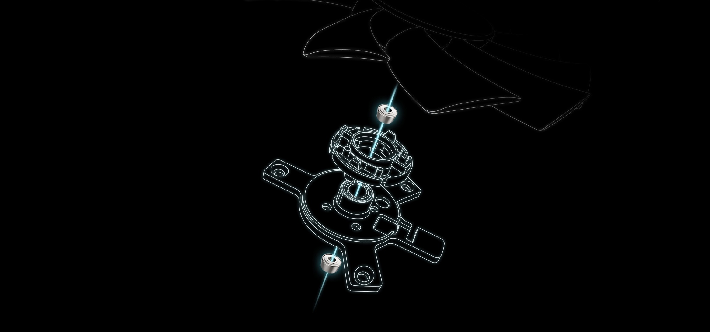 The fan impeller spins on a dual ball bearing setup that will last up to twice as long as a sleeve bearing design.