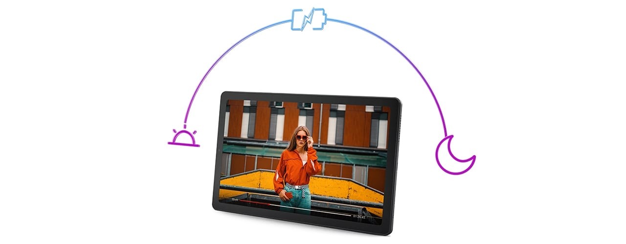 Binge, chill, and relax for longer with the Lenovo Tab M9 tablet’s long-lasting battery life. And with expandable microSD card* storage, keep a library of your favorite films and shows in your pocket.