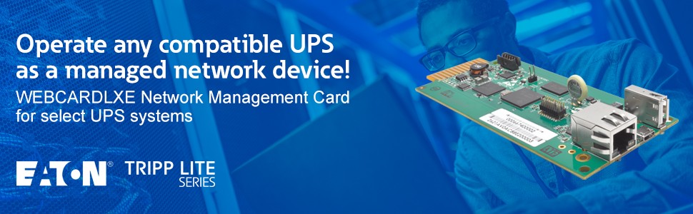 Eaton Tripp Lite series WEBCARDLXE Network Management Card allows any compatible UPS system to function as a managed device on your network. Simply insert the card into an accessory slot and use SNMP, a web browser, SSH or Telnet to access, monitor, control and reboot the UPS. The WEBCARDLXE uses an HTML5-based interface, meaning Java isn’t needed.