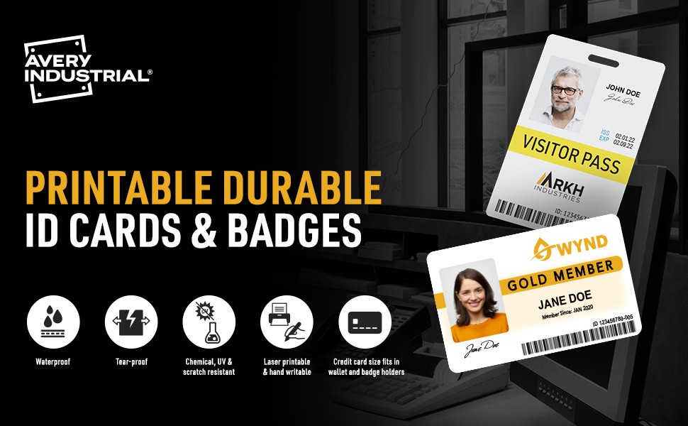 Use for photo IDs, membership cards, event badges, safety permits, business cards, medical ID cards and more. Waterproof cards & badges are made out of a durable 11 mil plastic material that is printable using standard laser printers.
