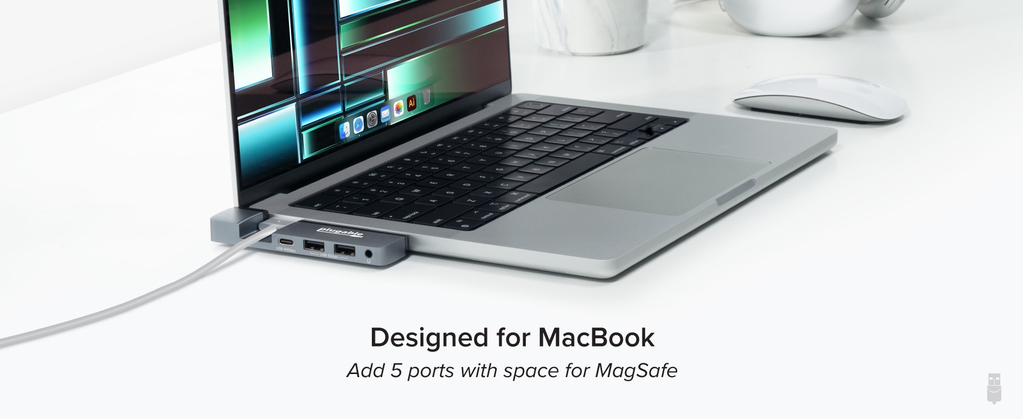 Your MacBook was designed to “just work.” So when you add an accessory, you expect the same. And that’s what you get with the Plugable USB-C 5-in-1 Hub (AMS-5IN1E), designed for Apple MagSafe.