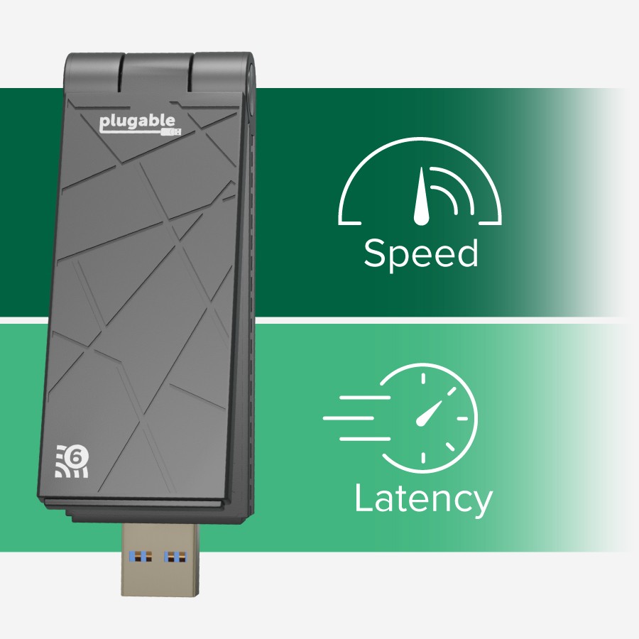It doesn’t matter if you need a Wi-Fi adapter for a PC you’re building, or you just want to upgrade to the latest Wi-Fi standard on your laptop for a jump in performance, the Plugable USB-WIFIAX is your simple solution for upgrading to Wi-Fi 6. And with more of our work being done online, upgrading with a USB WiFi 6 adapter is a cost-effective way to extend the life of a computer. Get speeds up 1,201Mbps when you connect to a 5GHz network, and 573.5Mbps on a 2.4GHz network. Connect directly to your computer through USB, or USB-C. If interference is an issue, an included 45-inch (115 cm) extension cable lets you move your adapter to find the strongest signal. It even folds flat so you can take it with you. |