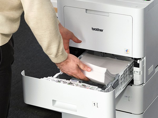 Supports busy workgroups with a 520‐sheet capacity paper tray and 100‐sheet capacity multipurpose tray.(3) For additional capacity, add optional trays for a maximum capacity of up to 1,620 sheets.(6)