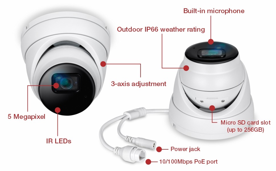 H.265 compression format. Easily view live video from the 5MP turret camera on your mobile device using our free Sentinel mobile app, or on your PC with our free View Manager desktop camera video management software.