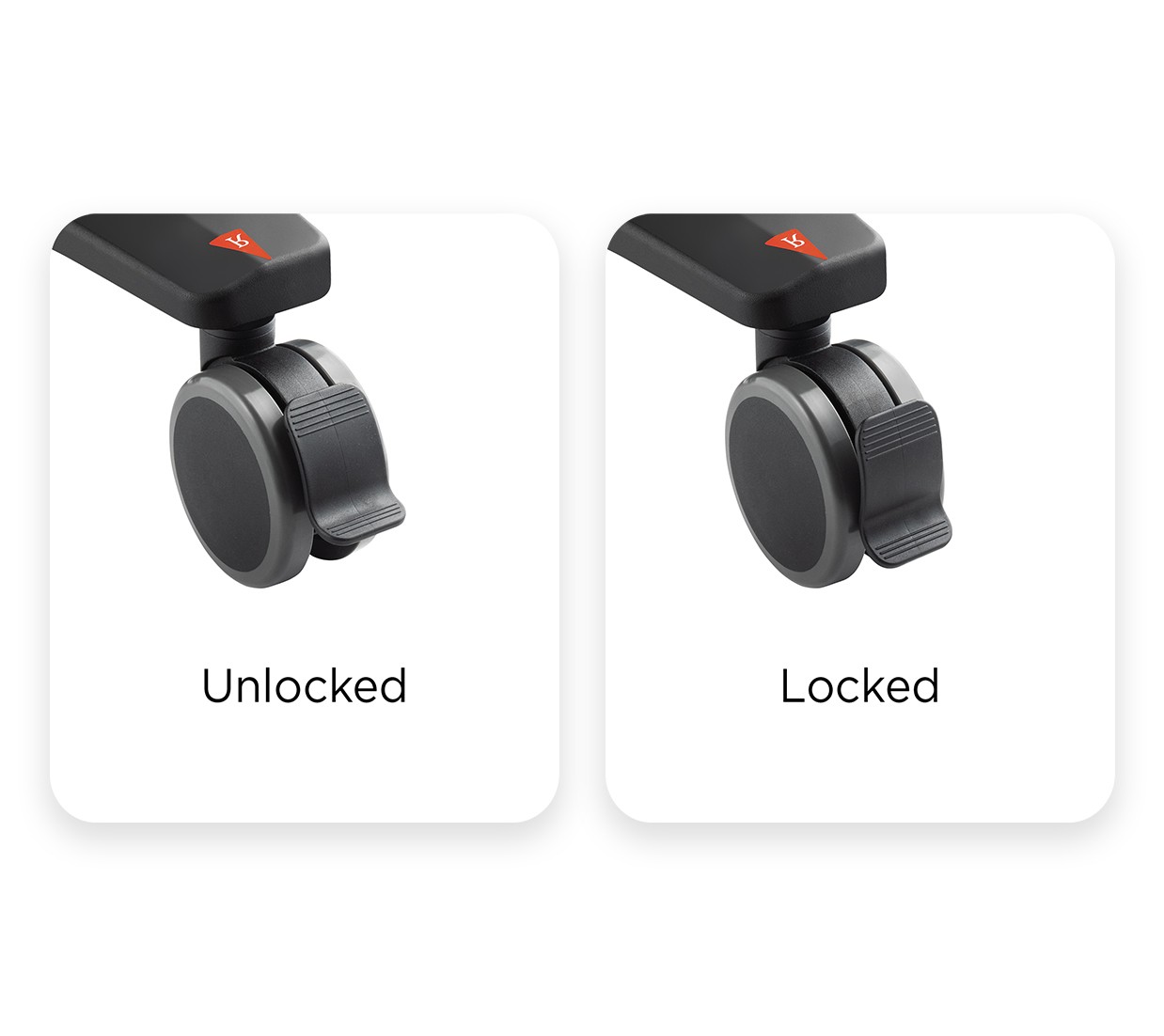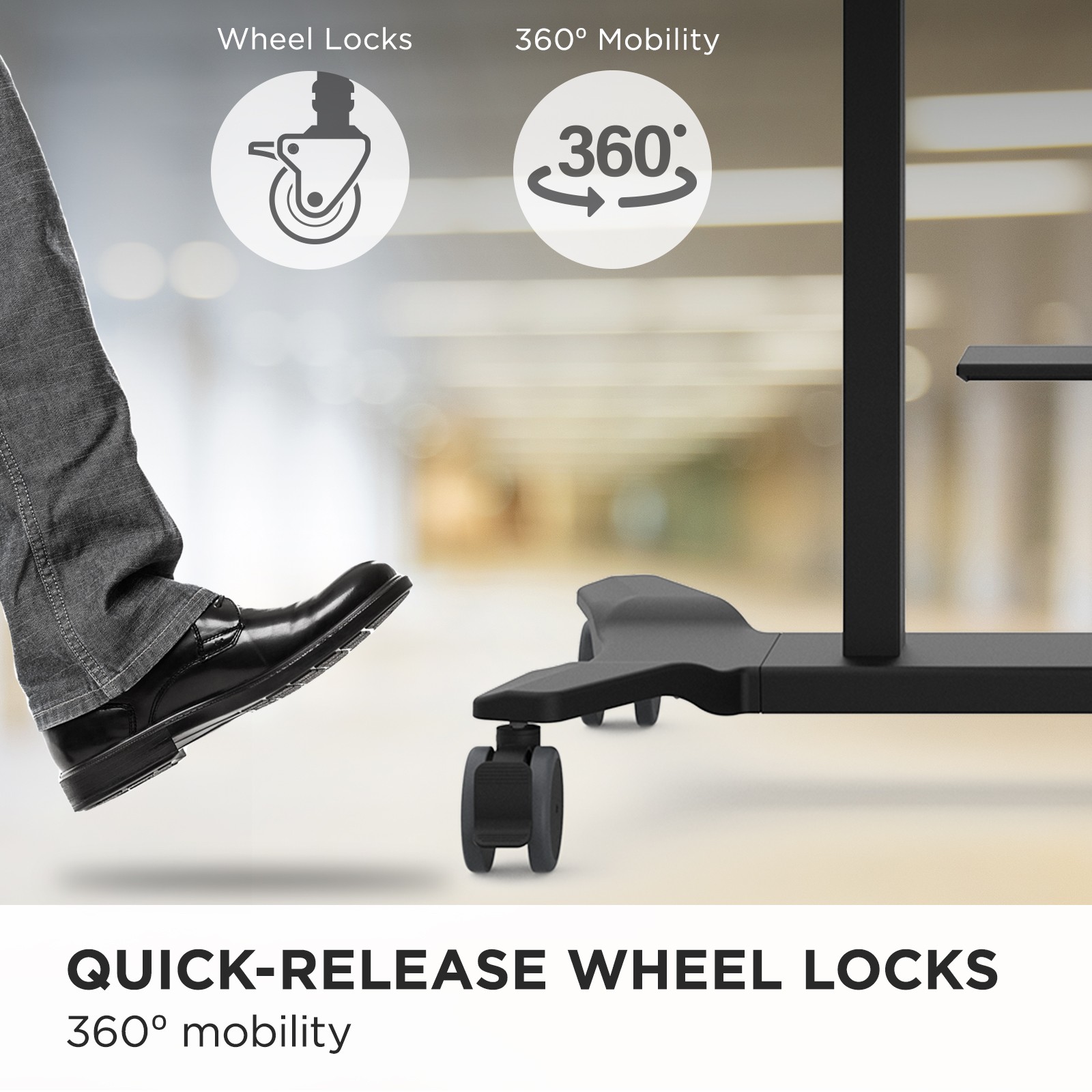 Easily lock each wheel with your foot to ensure your display remains safely in place.