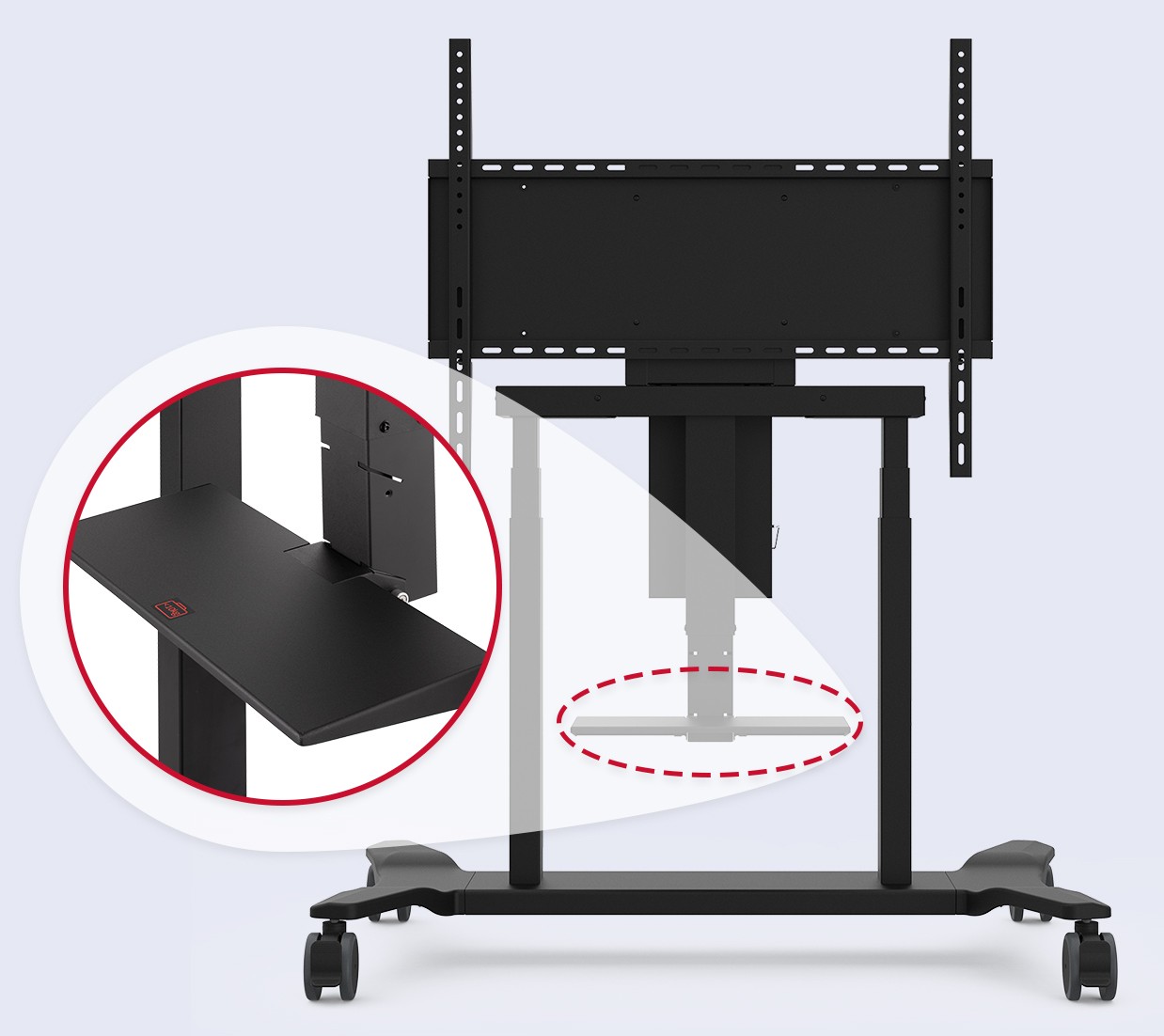 IFP P&A, Motorized Double-column up-down Trolley Cart for 55"-86",VESA Wall Mount Bracket 800*600 with Chromebox Safety Lock Holder ,Max. Loading 75kg(165 lbs), Black