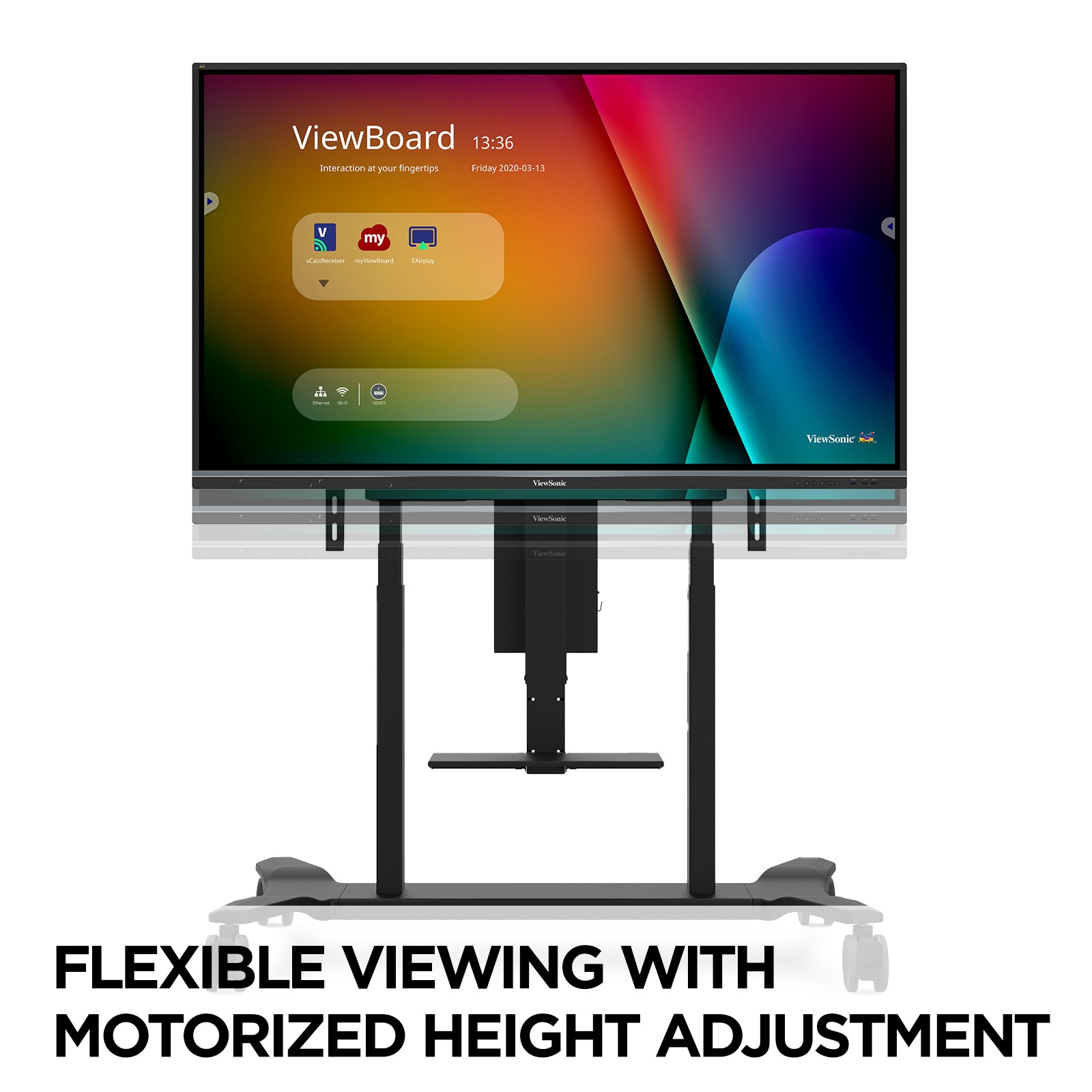 Motorized Height Adjust: Effortlessly raise and lower your display to improve line-of-sight and accessibility.