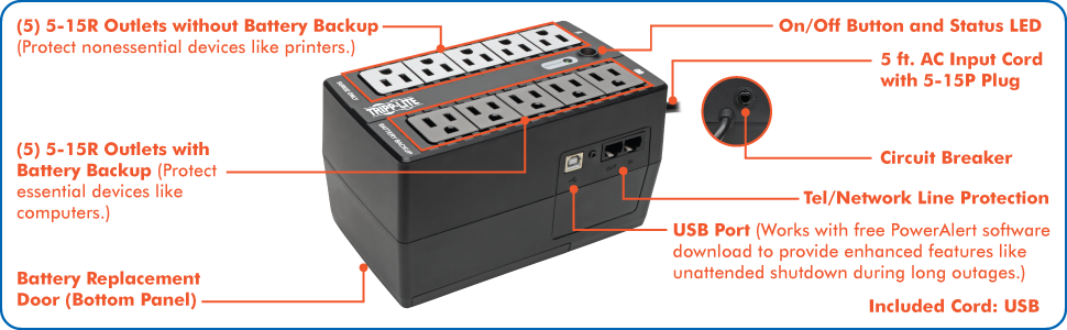 Tripp Lite's ultra-compact standby UPS system fits small spaces and tight budgets. This versatile UPS provides advanced protection for a variety of electronics, including computers, smart devices and audio/video components.