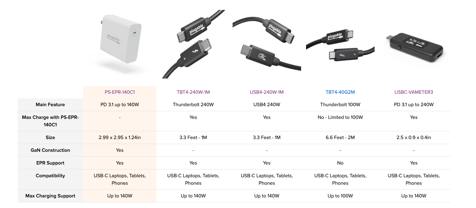 Featuring the highest standards of USB Power Delivery 3.1 and support for EPR, this future-proof power adapter is compatible with laptops, tablets, and phones up to 140W.