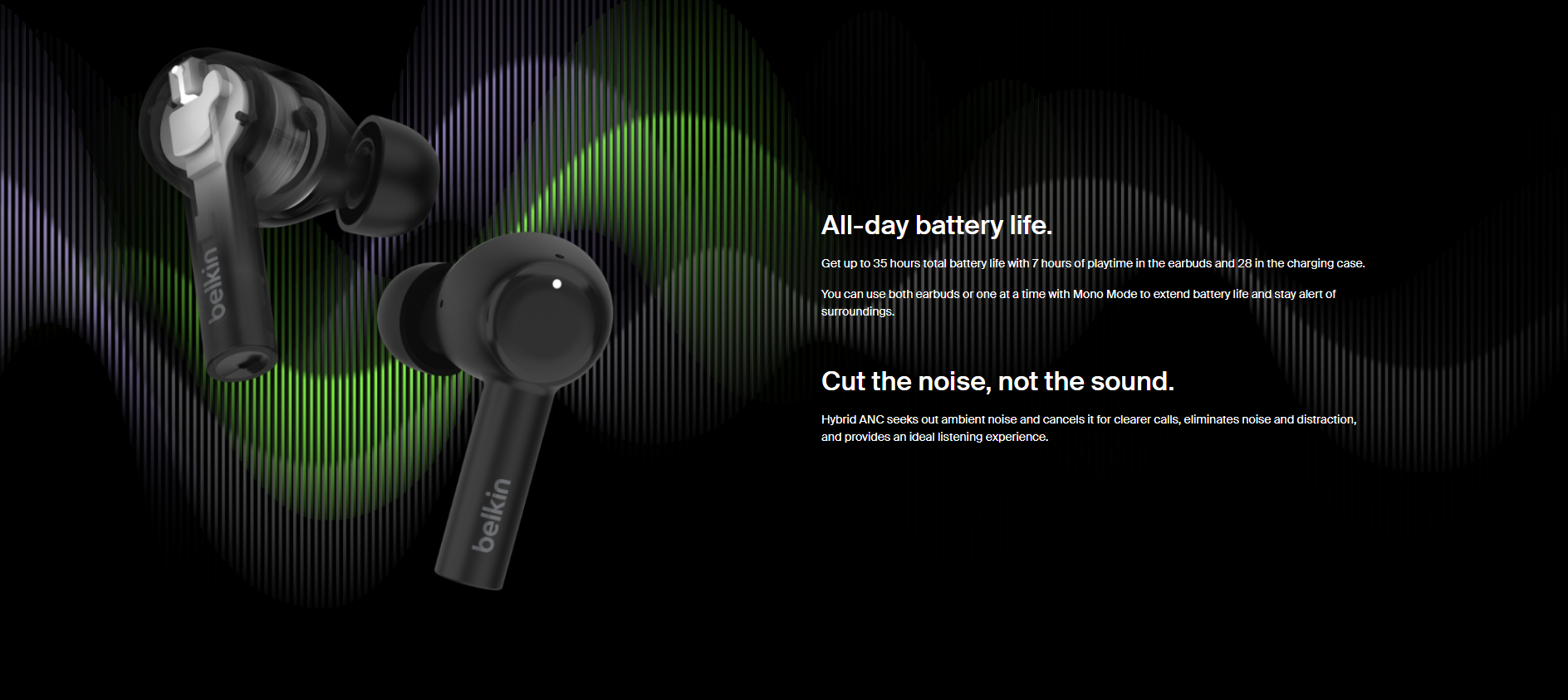 - Free SoundForm app provides additional customizations with EQ settings, adjustable Hear-thru mode, and locate misplaced earbuds with Belkin’s Ping My Earbuds feature