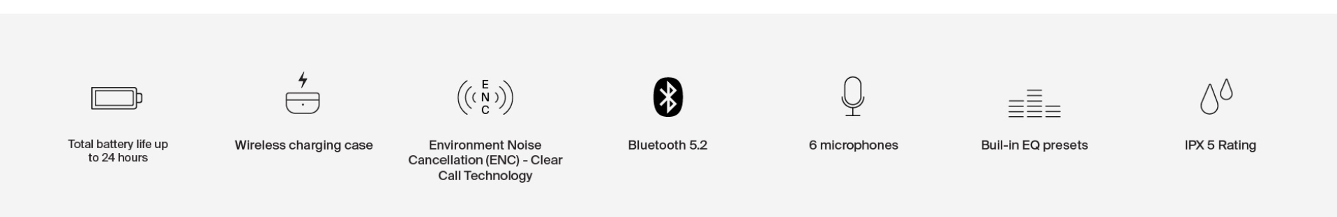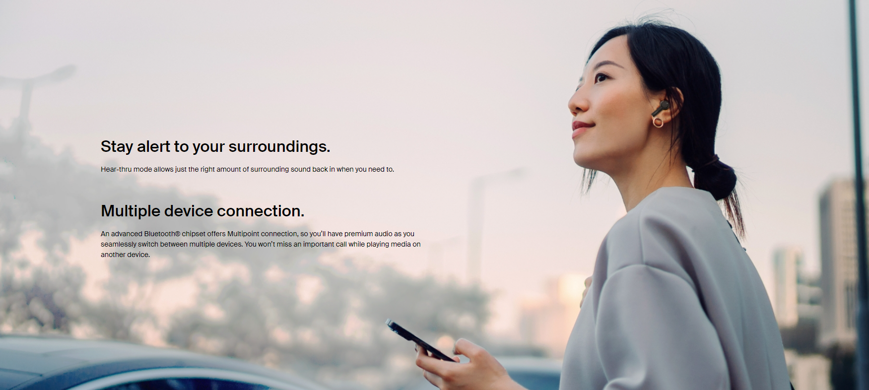 - Mono mode allows use of single earbud to conserve battery life and stay alert of surroundings