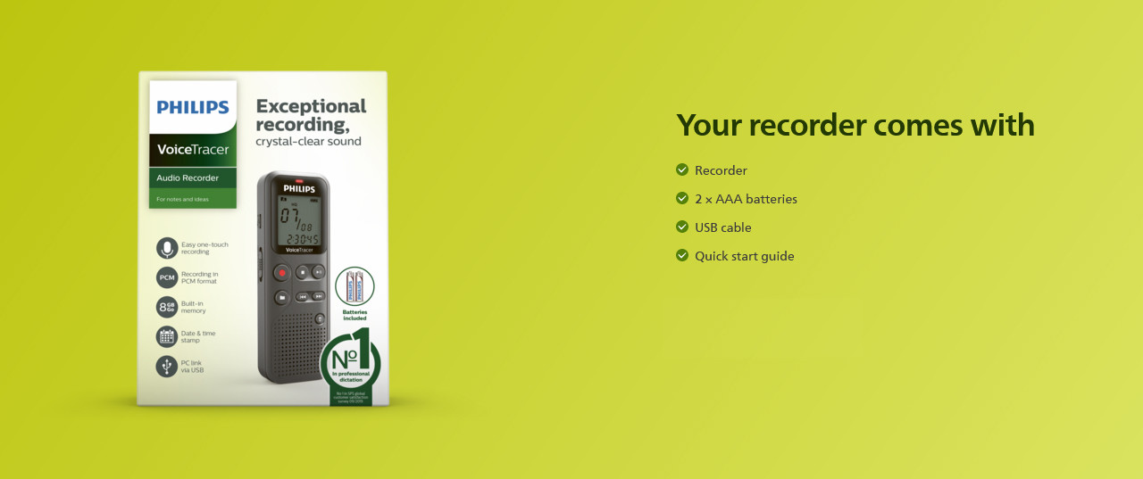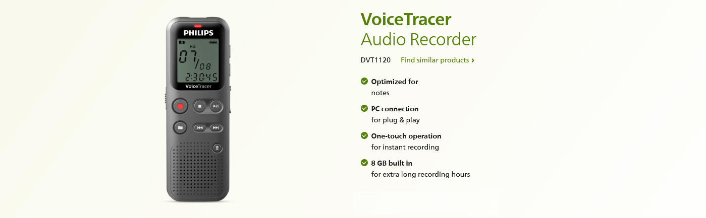The VoiceTracer 1120 is the perfect voice recorder for capturing notes, ideas and thoughts on the go. Thanks to PC connection you can share your voice files very easily.