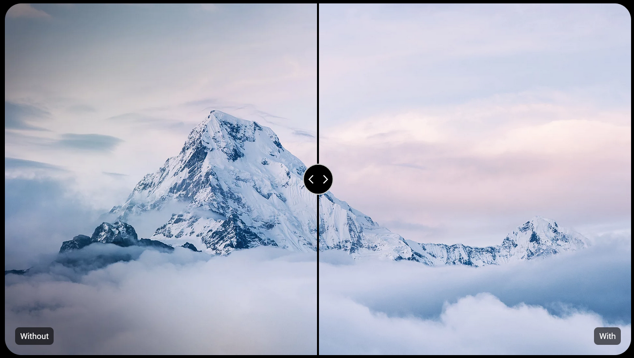 Preview the same image in two color gamuts, side-by-side, for comparison in photo editing.
