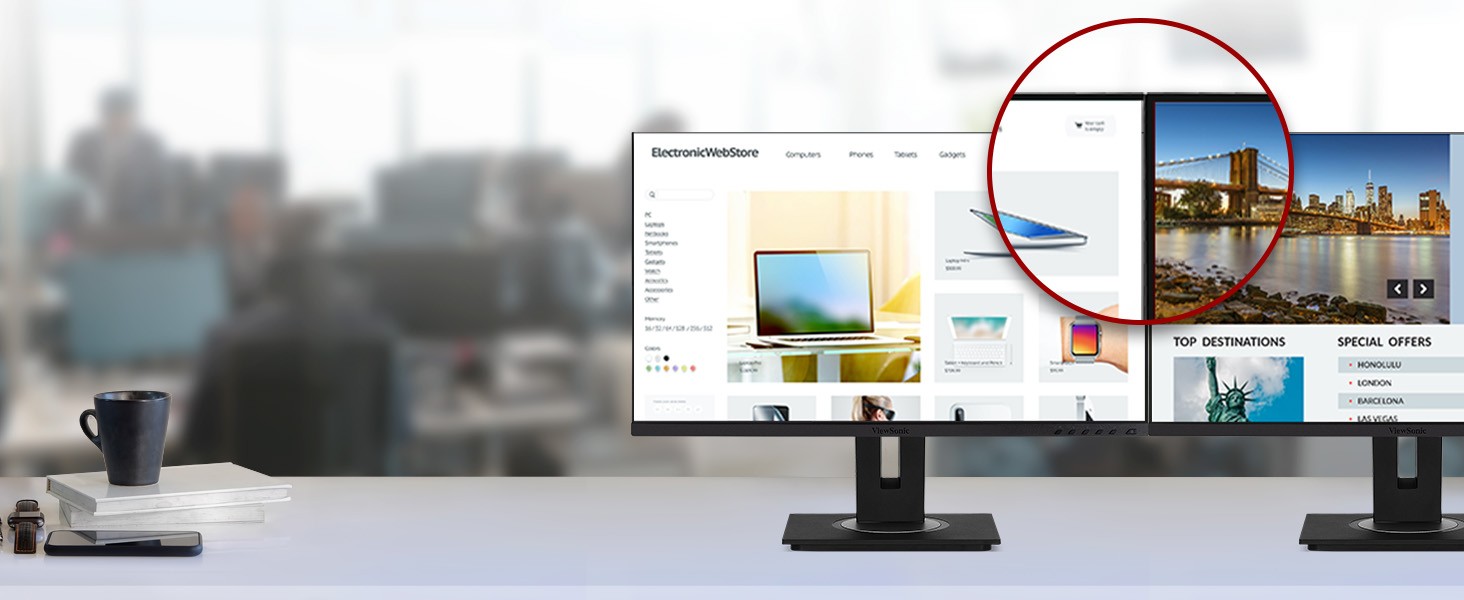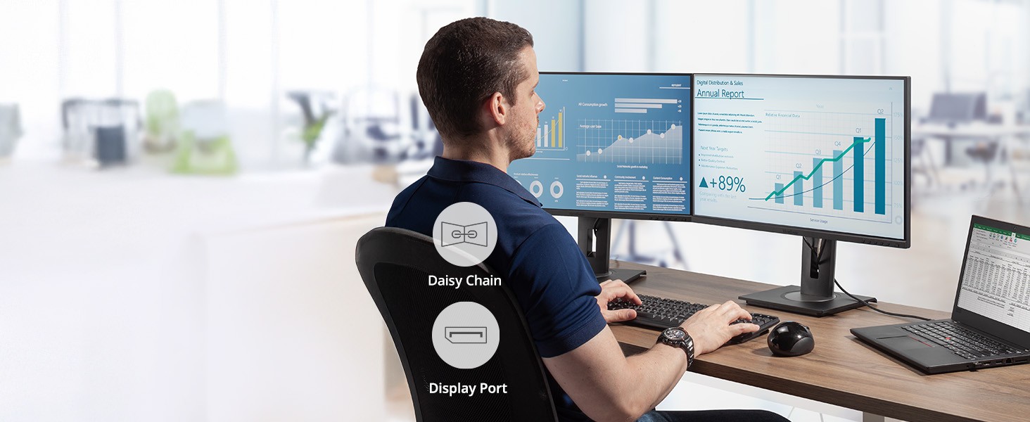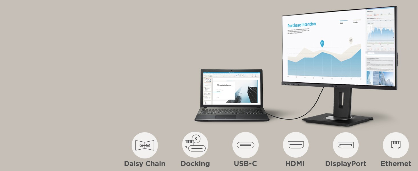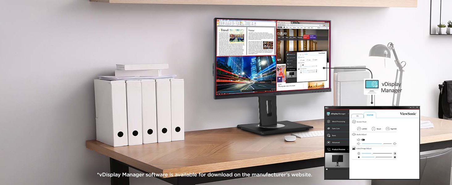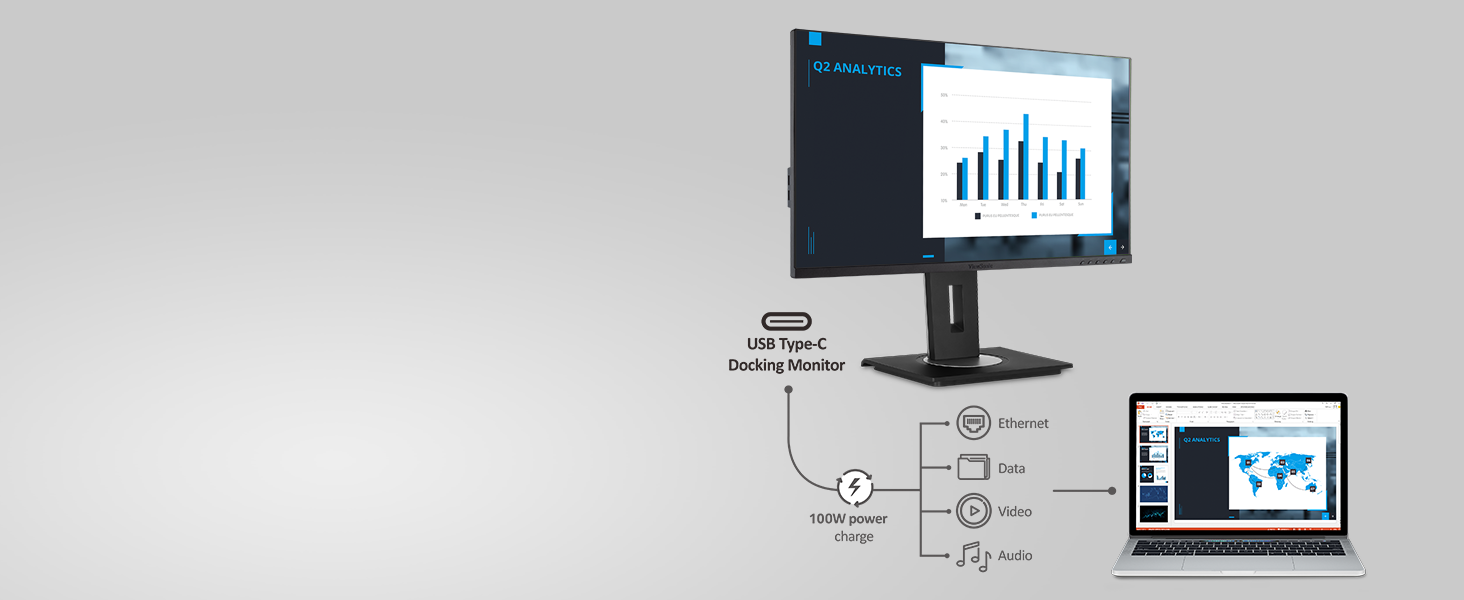 Designed to boost productivity and maximize output, the ViewSonic® VG2756a-2K is a 27” QHD docking monitor that transforms your desktop into a streamlined and efficient workspace. Enjoy reliable and flexible network connectivity with the integrated gigabit Ethernet port, while the USB Type-C connectivity allows easy single-cable connectivity to provide data, audio, video and up to 100w power delivery. DisplayPort out allows easy Daisy Chain capability for a dual monitor set-up for additional screen real estate. That’s not all, the integrated USB hub allows easy connectivity for your peripherals and accessories. A best-in-class ergonomic design features 40-degree tilt and bi-directional pivot so your screen and workspace are as comfortable as you need. In addition, the included vDisplay software gives you quick and easy OSD control, as well as customized screen templates for easy multi-tasking. This monitor is also shipped in eco-friendly biodegradable packaging, along with an easy-to-install quick release stand that makes for quick deployment and a lower total cost of ownership.