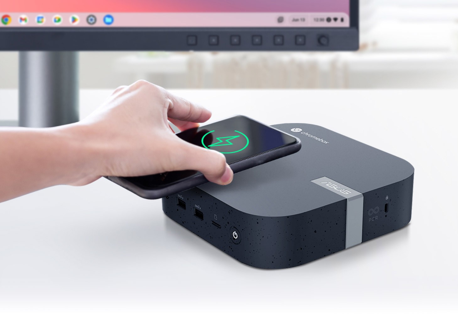 For added convenience, ASUS Chromebox 5 has a built-in WPC-certified Qi wireless charger that provides up to 15-watt output. Plus, a Foreign Object Detection (FOD) feature ensures the charger only works when a compatible device is detected, preventing overheating or damage to a non-compatible device.