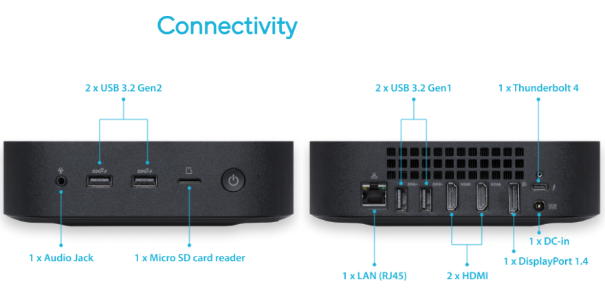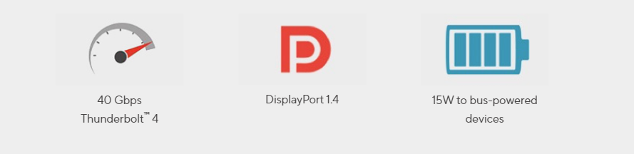 Thunderbolt ™ 4 connectivity offers users unrivaled versatility with ultrafast speeds. It supports USB-C ® Power Delivery and provides data transfer speeds of up to 40 Gbps when connected to high-performance peripherals. It can be used in tandem with the included two HDMI ports and DisplayPort to support up to four displays.