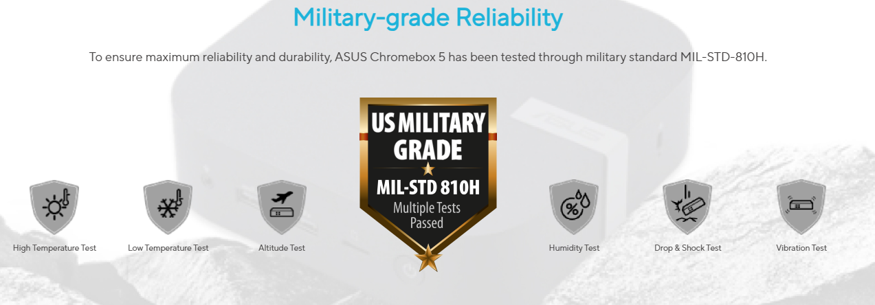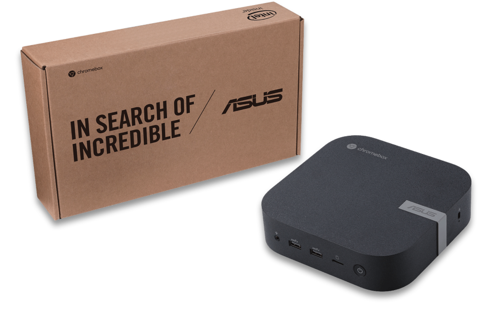 ASUS continues to make strides in its sustainability efforts. ASUS Chromebox 5 is made of post-consumer recycled plastics (PCR) with a durable scratch-resistant textured surface to ensure device longevity. In addition, ChromeOS devices such as ASUS Chromebox 5 are designed to consume up to 46% less energy than comparable competitor devices. As an added bonus, each ASUS Chromebox 5 is packed in FSC-certified packaging.