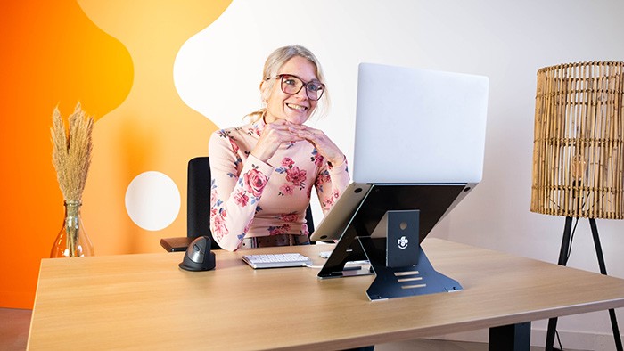 This laptop stand not only raises your monitor, but also has a document holder. You can place your papers in front of the laptop keyboard while working. Both your screen and papers are brought more up to eye level, which will automatically stimulate you to sit straight. The way to prevent annoying pains in neck, shoulders and back