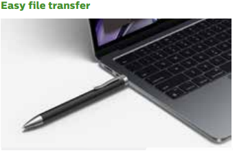 The recorder requires no special installation. Simply plug your recorder into your PC or Mac and play back your files or transfer them to your computer right away. Your recorder pen can also be used as a USB storage device.
