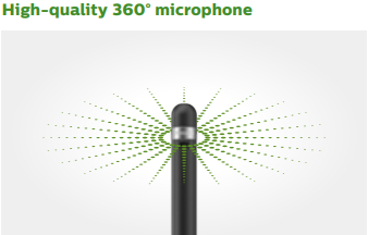 The high-quality 360° microphone delivers clear sound quality when recording notes, conversations, or meetings, at your desk or on the go.
