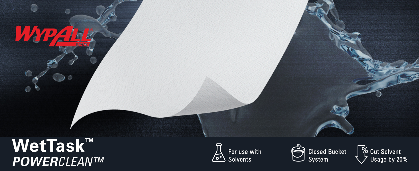 Use these wipers with solvents. Also compatible with detergents and water-based cleansers. The enclosed system reduces exposure to chemical vapors and splashes. Towel/Wipe Type: Cleaner/Detergent Wet Wipe; Application: General Purpose; Applicable Material: Multiple; Color(s): White.