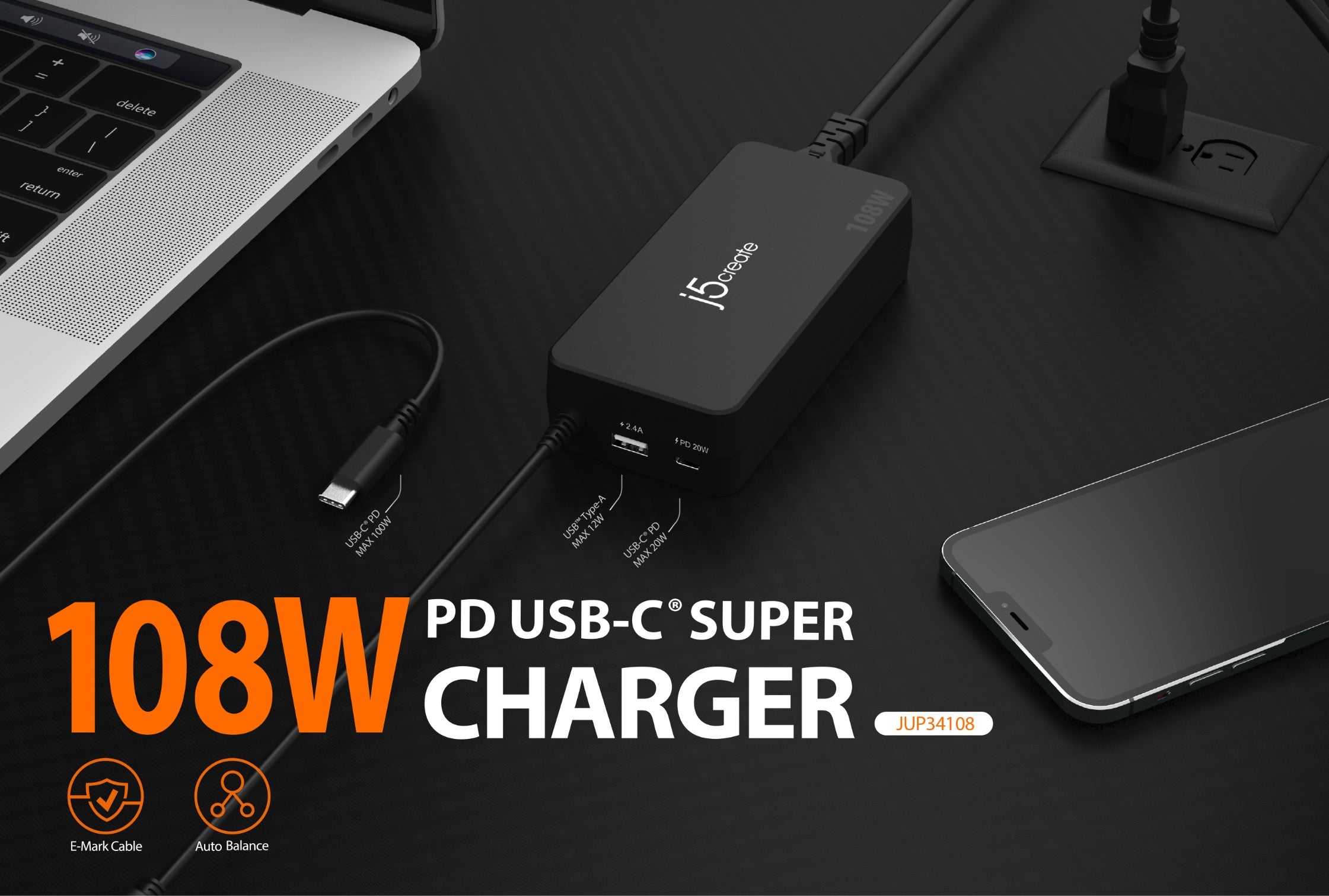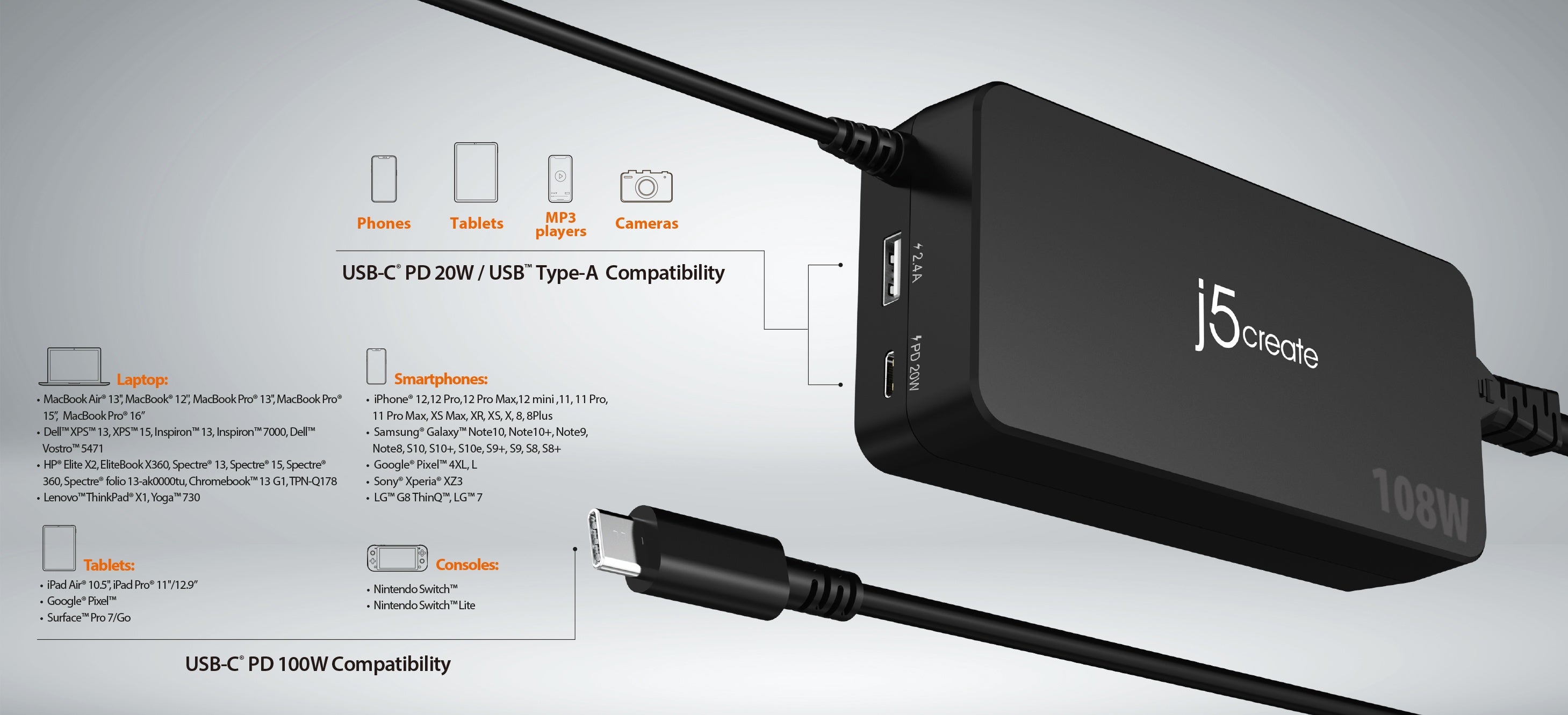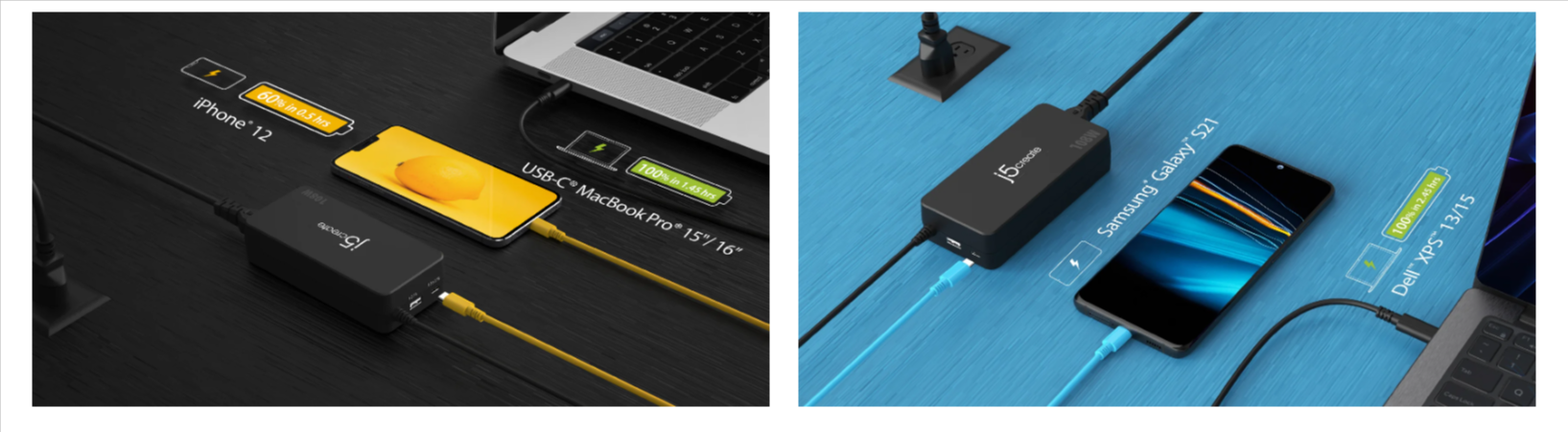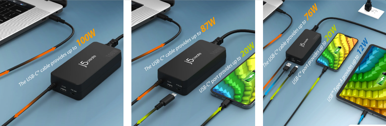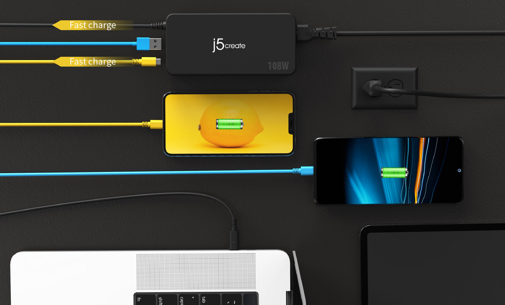 Fast charge your USB-C® laptop/tablet and 2 smartphones or other devices at the same time