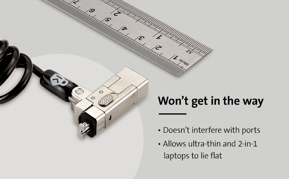 The latest laptops from HP, Lenovo, and Asus increasingly feature the Kensington Nano Security Slot, offering all the security and benefits of the standard Kensington Security Slot™, yet 70% smaller. However, these ultra-thin devices may be so slim that while a standard cable lock will fit, the thickness of the lock can be greater than