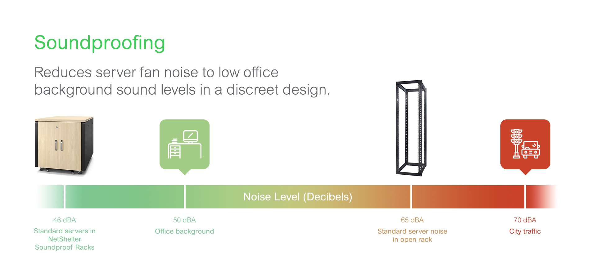 NetShelter Soundproof Racks are for organizations that need to deploy IT in offices, classrooms, or customer-facing environments and might not have the space, budget, or time to build a traditional server closet. |