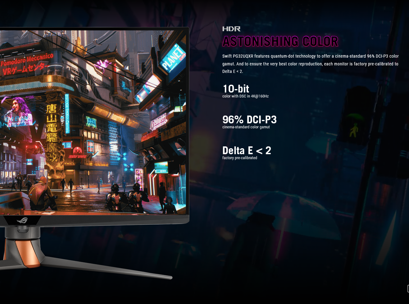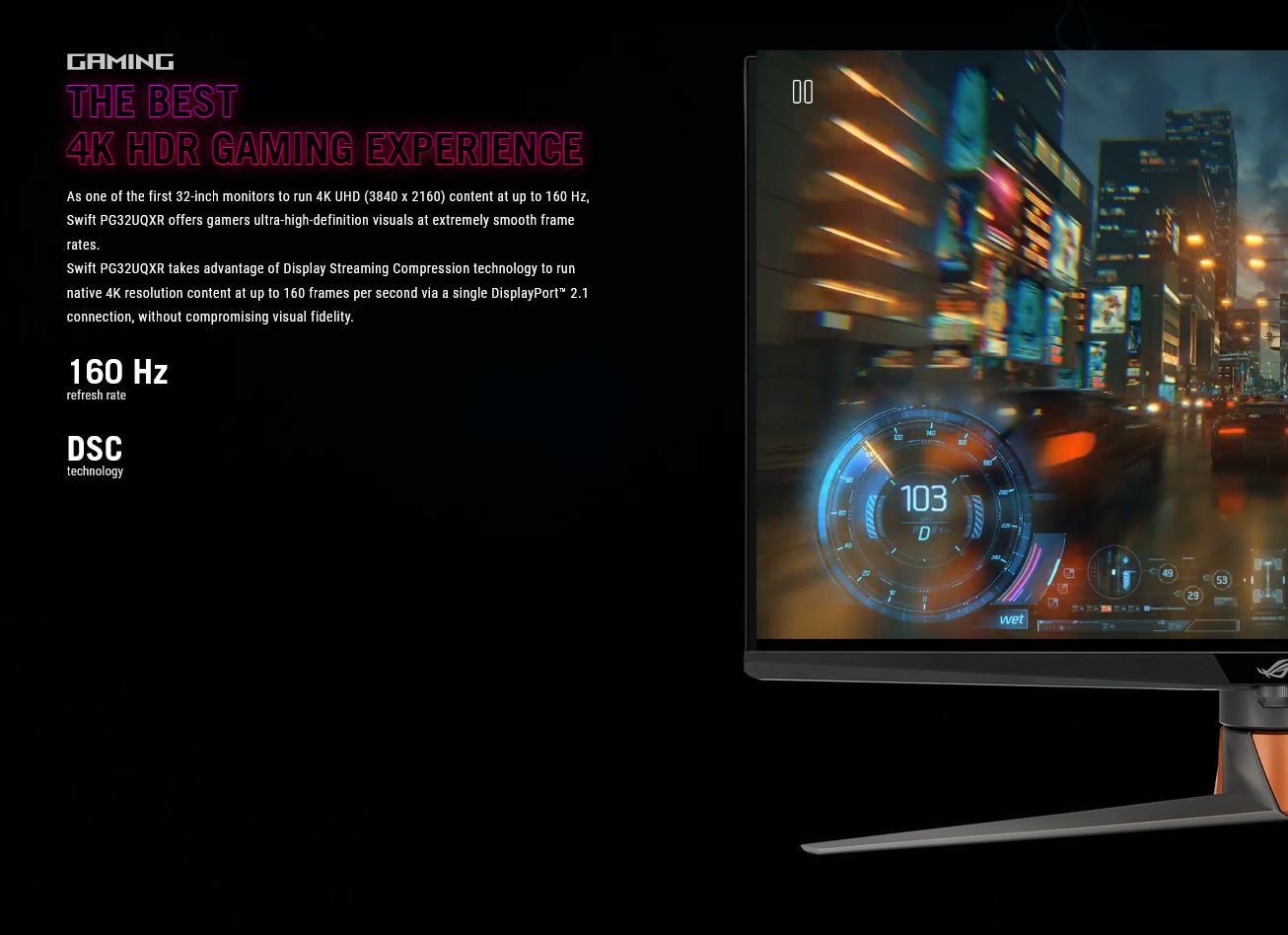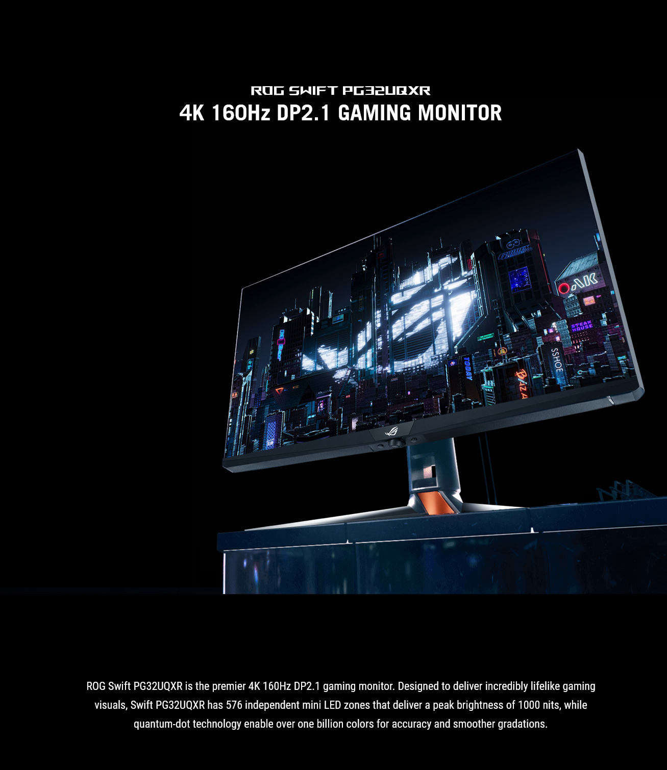 - 32-inch 4K (3840 x 2160) mini LED gaming monitor with 160 Hz refresh rate designed for professional gamers