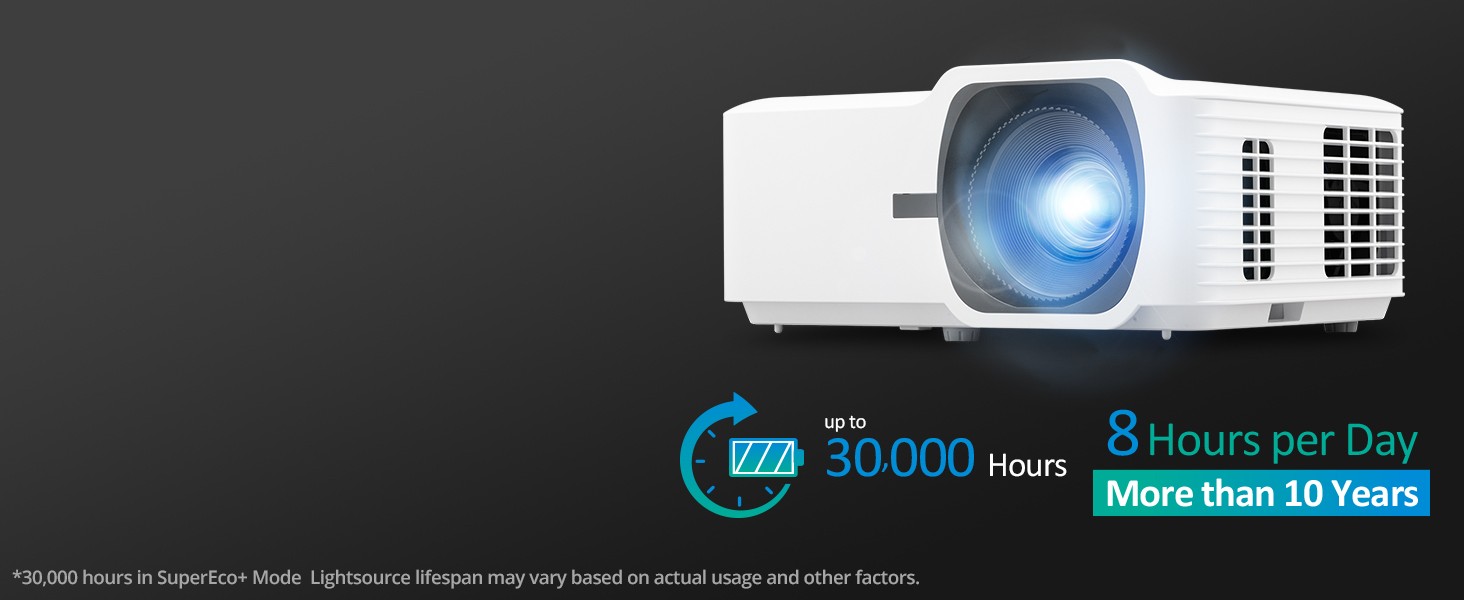 With the ViewSonic® LS740HD laser projector, you can light up every room with brilliant presentations and razor-sharp resolution. Featuring the latest laser phosphor technology, the LS740HD projector delivers 5,000 ANSI lumens of brightness to ensure crisp images even in rooms with ambient lighting. Enjoy a maintenance-free projection experience without having to deal with complicated lamp replacements. This eco-friendly projection solution features a compact design for easier transportation. Experience screen sizes up to 300” in 1080p Full HD resolution for show-stopping images designed to fill up boardrooms, lecture halls, auditoriums and other public spaces. The LS740HD laser projector comes loaded with features like 1.3x optical zoom, H/V keystone, 4 corner adjustment, 360° projection and portrait mode for easy setup and versatile applications.