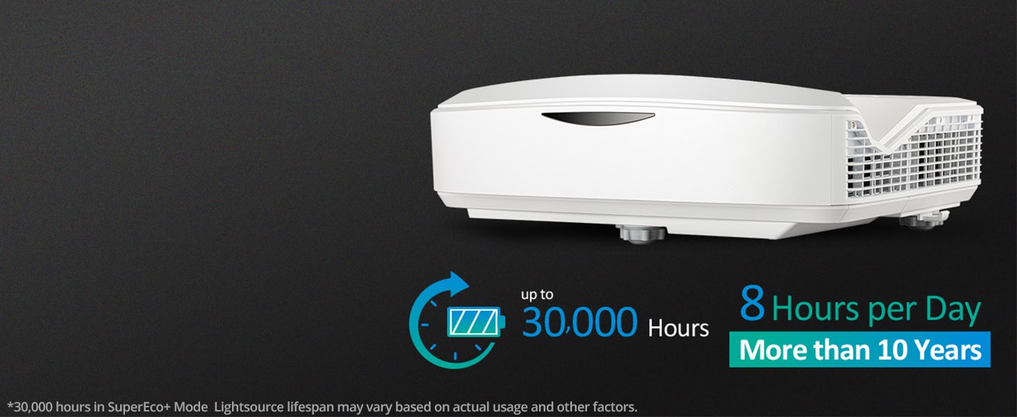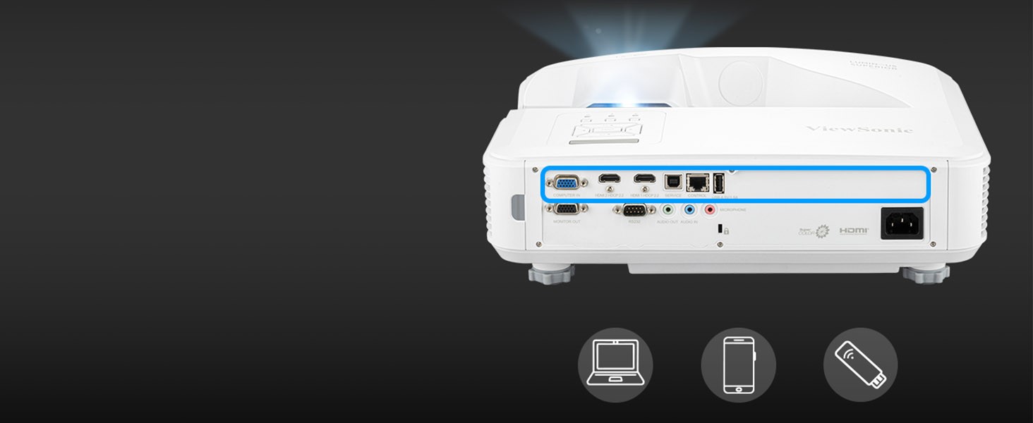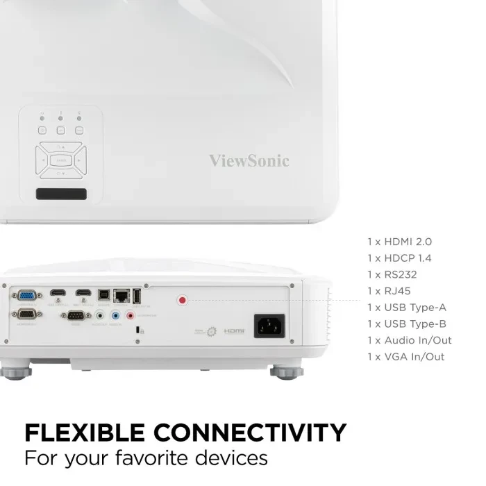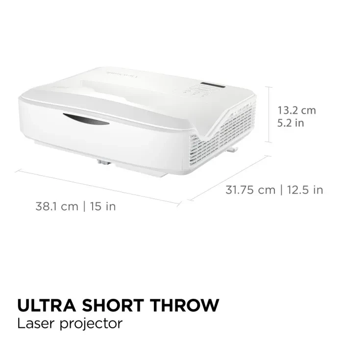 The ViewSonic® ultra-short throw LS832WU projector is the ultimate digital signage solution for public and commercial spaces such as auditoriums, museums, storefronts, shopping malls and airports. Featuring laser phosphor technology, the LS832WU projector delivers 5,000 ANSI lumens of brightness to ensure crisp images even in spaces with ambient lighting. Enjoy a maintenance-free projection experience without having to deal with complicated lamp replacements. An ultra-short throw ratio enables this projector to create 100” images from just 11" away. Enjoy screen sizes up to 170” at a lower cost-per-inch compared to commercial displays. The LS832WU laser projector comes loaded with features like H/V keystoning, automated four corner adjustment and flexible installation options. Enjoy comprehensive LAN control for centralized management and compatibility with Crestron, AMX, Extron and PJ Link AV control systems.